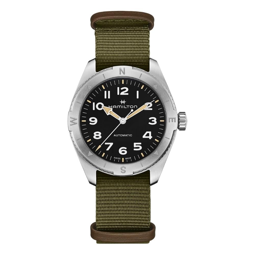 Khaki Field Expedition ve yeni NATO kayışı sayesinde açık havaya hazırlanmak artık daha kolay. Pusula tasarımına sahip bu arazi tipi macera saati, bir sonraki yolculuğunuzda güneşin yardımıyla yönünüzü bulmanızı sağlar. 41mm paslanmaz çelik kasaya yerleştirilmiş yeşil NATO dokuma kayışla eşleştirilmiş olan bu saat, vidalı kurma kolu ve siyah kumlu kadranıyla şimdiye kadarki en sağlam saatiniz olacak.